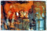 Mischtechnik auf/hinter transparentem Stoff, 50 x 150 cm