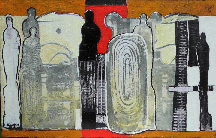 Mischtechnik auf Nessel, je 120 x 80 cm