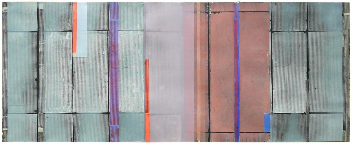 Klebstreifen, Druckfarbe, Enkaustik auf Spanplatte, je 93 x 140 cm